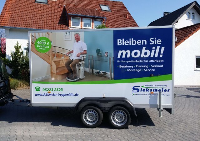 Die ideale Lösung für kurz- und mittelfristige Werbung im Innen- und Außenbereich sind Werbeplanen und Anhängerbeschriftungen. Sie sind schnell und einfach anzubringen und genauso schell und einfach wieder zu entfernen. Hervorragend geeignet für Veranstaltungen, Messen, Neuvorstellungen, saisonbedingte Verkaufsaktionen, Sonderangebote und vieles mehr.